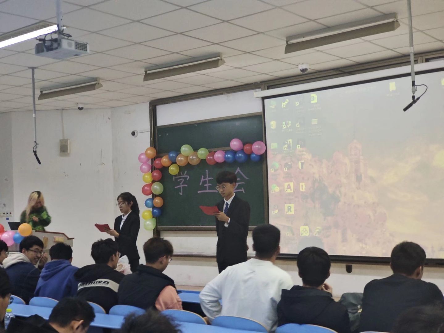 会议伊始,学生会主席杨士成发言:他首先肯定了机电学院学生会一年来的工作成绩,对各个部门近期举办的活动表示满意;欢迎新一届学生会学生干部加入学生会大家庭,机电学生会的未来是你们的。随后,副主席吴梦龙和焦体曌以及心理辅导站站长傅昭栋依次上台发言,简单介绍了机电学生会的职责与要求。紧接着,各部门副部长依次上台为大家详细介绍自己部门的成员和特色活动,展现自己部门独特的一面,并就未来规划作出看法与建议。最后,各部门的新生力量为大家带来精彩的节目,一首首动人的歌曲,一支支优美的舞蹈,无不展现出机电学院学生会的新风貌。节目表演完毕后,全体成员一起合影留念,至此,2021年学生会家庭会议圆满结束。