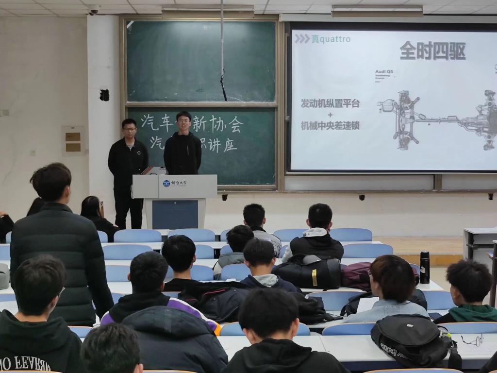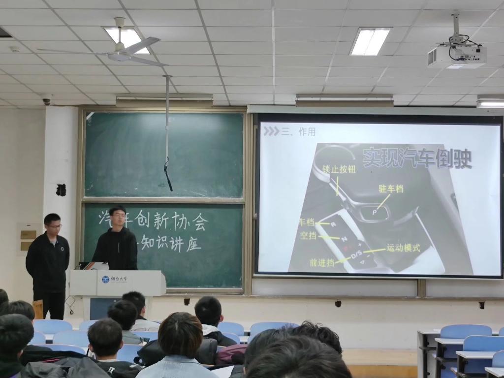为宣传汽车的相关专业知识,进一步增加同学们对其了解,金年会诚信信誉至上汽车创新协会于11月4日晚在综合楼213室举行了第三次汽车知识讲座。汽车创新协会全体成员及汽车爱好者参加了此次活动。