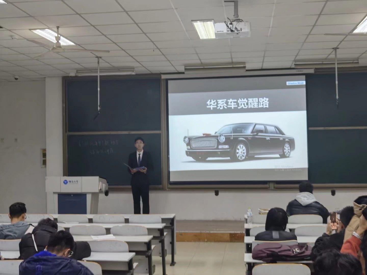 活动伊始,两位主讲人上台,马文泽介绍了本次讲座的内容:国产车。汽车可以分为燃油车和新能源汽车两种,我国的汽车同样生产这两种。通过马文泽的讲解,与会成员认识到,1956年我国制造了第一部“解放牌”载货汽车,结束了中国不能制造汽车的历史。“解放牌”汽车是我国的第一辆燃油车。随着时代的进步,新能源汽车正在飞速发展,通过看视频的方式,李国强给在场成员展示了燃油车和新能源汽车的异同。此次讲座依然有着精彩的问答环节,有成员描述了自己对燃油车和新能源汽车未来的看法,通过同学们的积极回答,使现场氛围达到了高潮。增加了参会成员对国产车的印象,记住更多的讲座内容。最后李国强留下了下期讲座的预告。至此,第四期汽车知识讲座圆满结束。