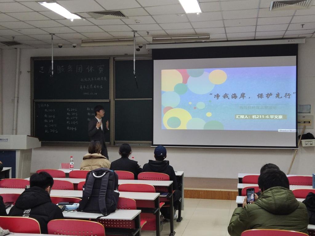 大会伊始,青协活动负责人乔广航致开场辞并介绍了本次交流会的流程及评分细则。随后,13个班集体答辩人轮流上台进行交流展示。在交流展示环节,各班通过PPT演示、视频播放等形式生动直观地展示了各自志愿服务的过程及成果。其中,机213-2班负责人精彩的答辩,给大家留下了深刻的印象。他们的交流展示环节张弛有度,有条不紊,既结合班级特色,详细介绍了志愿活动各项筹备事宜与组织策划经验,对志愿服务精神进行了精彩的阐释,同时还对活动中存在的问题进行了细致地分析,充分体现了其重视志愿、乐于服务的精神。大会进入尾声,纪全菊老师对各班表现给予了高度认可,同时又结合各班的表现,以敏锐的视角为同学们提供了许多建设性的建议。至此,机电学院志愿服务团体赛交流会圆满落幕。